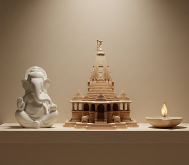 Temple models, god figurines, and sacred miniatures — crafted with devotion and detail